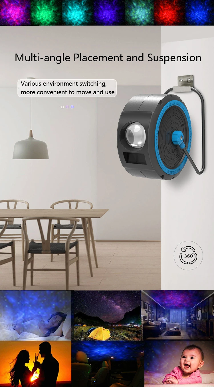 ✨【 8 цветов динамическое изображение 】: Разные цвета в сочетании с динамической проекцией ночного неба различных скоростей, создавая расслабленную, романтичную, красочную атмосферу проекции пространства, чтобы показать вам великолепное звездное небо.
