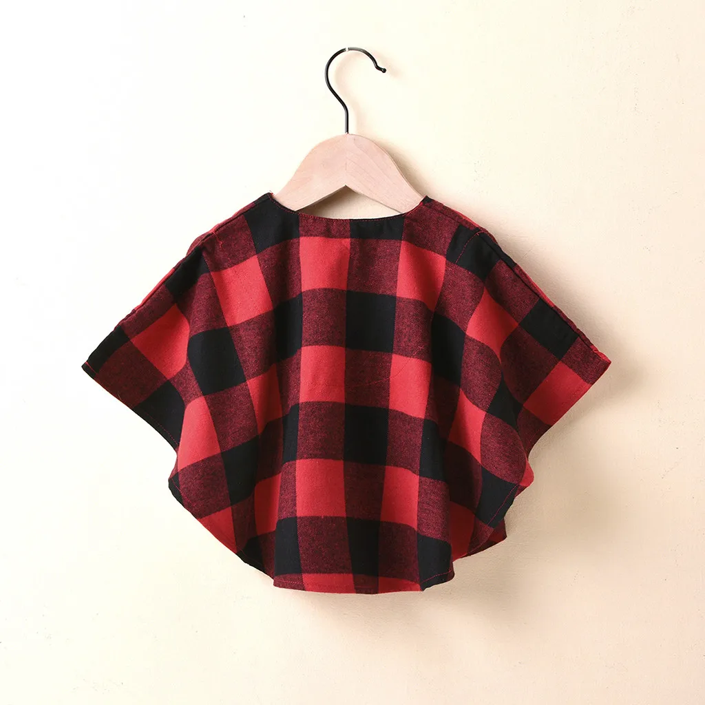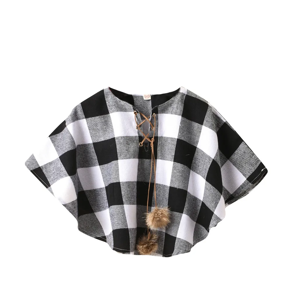 Toddler Kids Baby Girls Plaid Pompon Winter Outwear Cape Cloak Coat Christmas