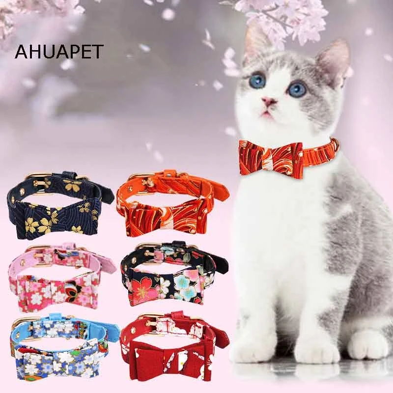 Ожерелья для кошек, ошейник для кошек, товары для питомцев, Прямая поставка, воротник с бантом, японский стиль