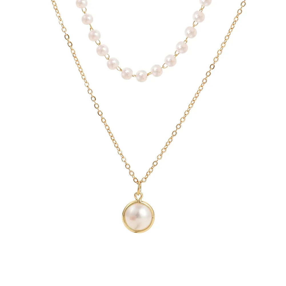 Модные милые двухслойные бусы ожерелье Имитация Жемчуга Кулон белые маленькие бусы женское колье, чокер Collarbone ювелирные изделияUS $1,67