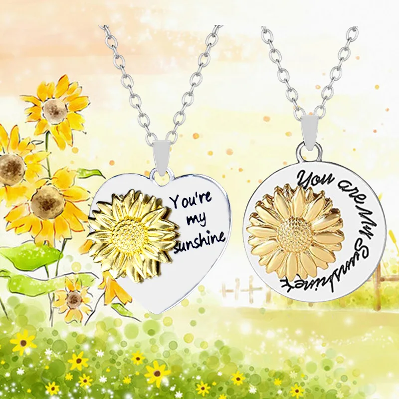 Качественный сплав, Круглый или в форме сердца кулон подсолнуха, модный и уникальный.