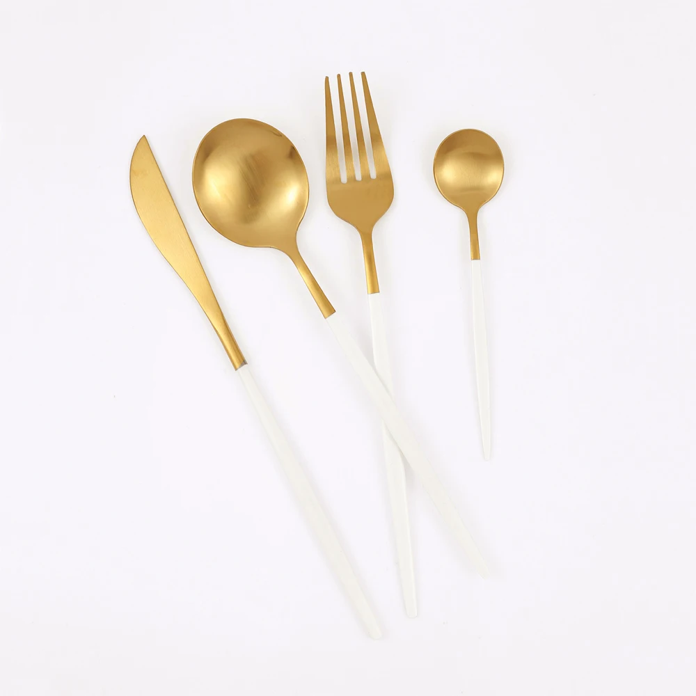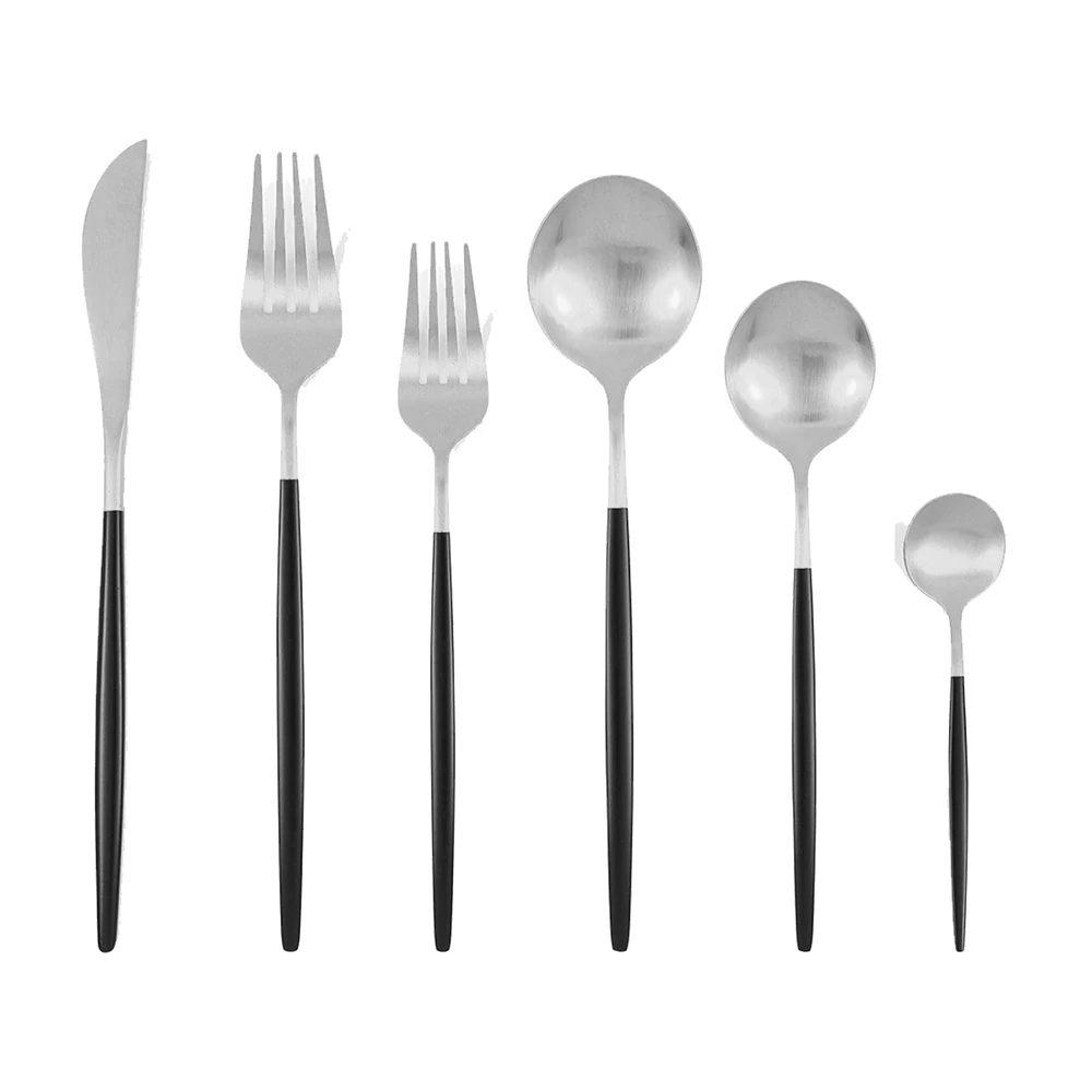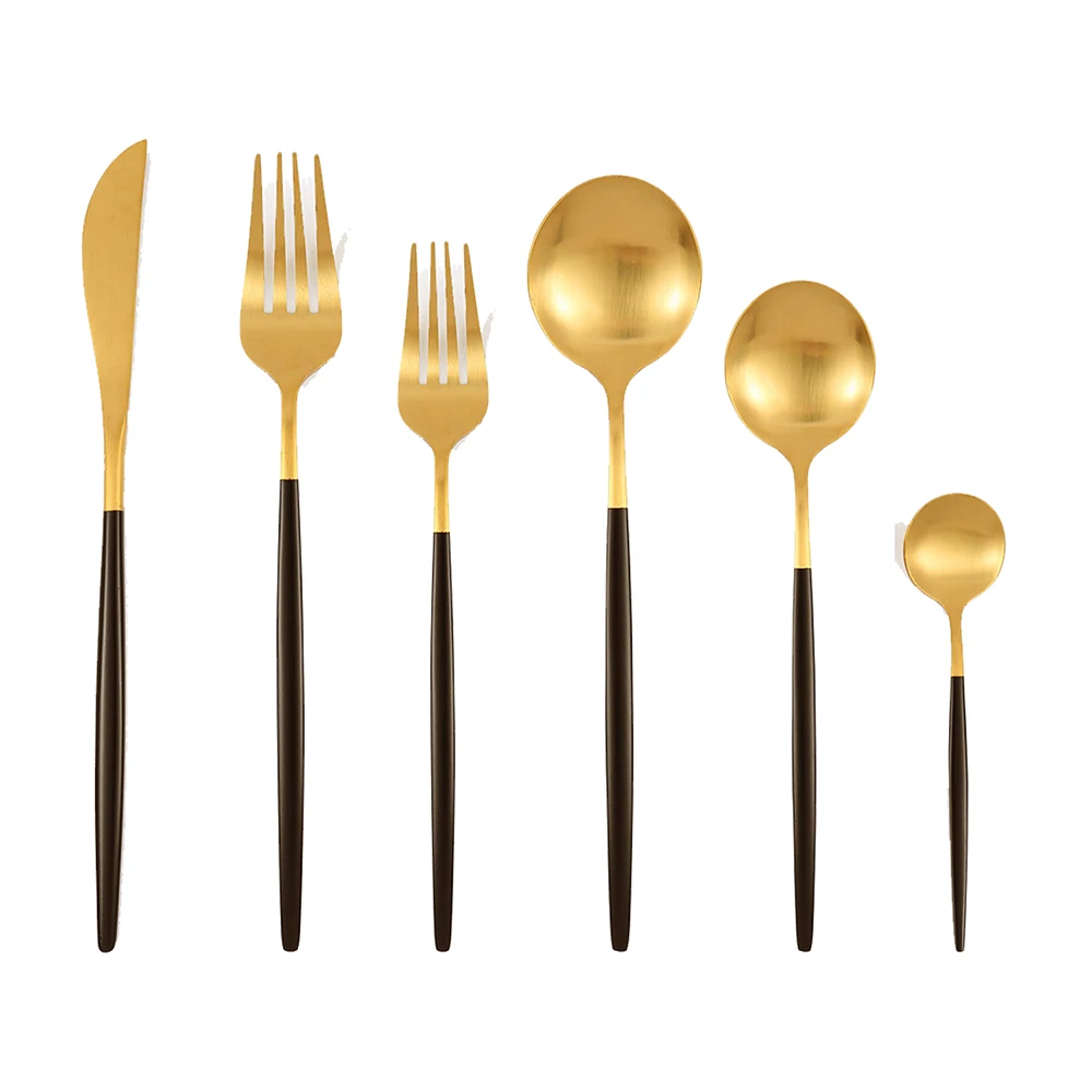 Посуда изготовлена из высококачественной нержавеющей стали, которая является прочной и не ржавеет. Ручки краски не должны быть очищены с помощью проволоки/грубой очистки колодки. Не используйте сильные коррозионные чистящие средства для сушки посуды. Подходит для семьи, вечеринок, гостиниц, ресторанов, подарков, дней рождения, походов на кемпинг.