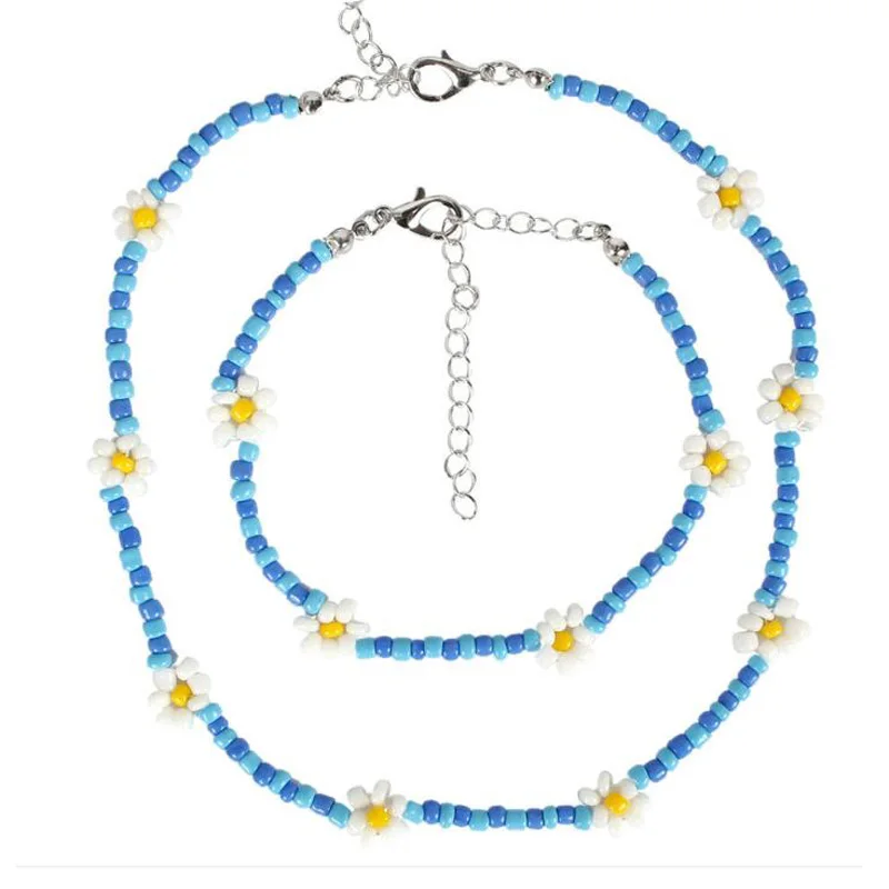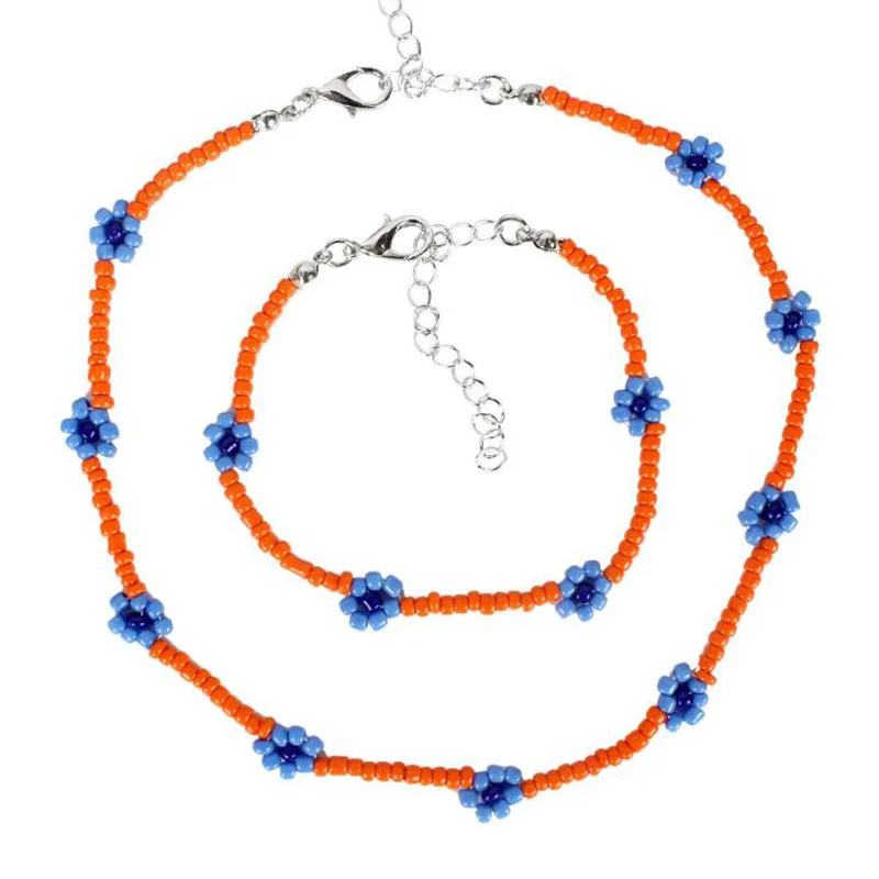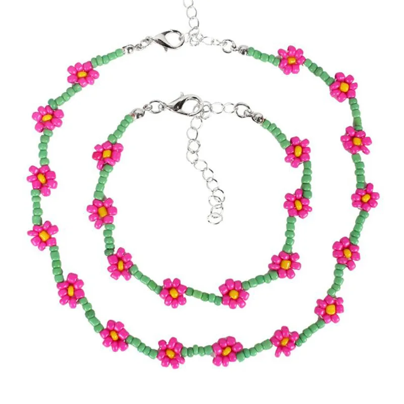 Набор из ожерелья и браслета Wgoud, ожерелье с маргариткой из бисера и браслета, Модный богемный этнический набор ручной работы из разноцветных бисера набор украшений для женщин
