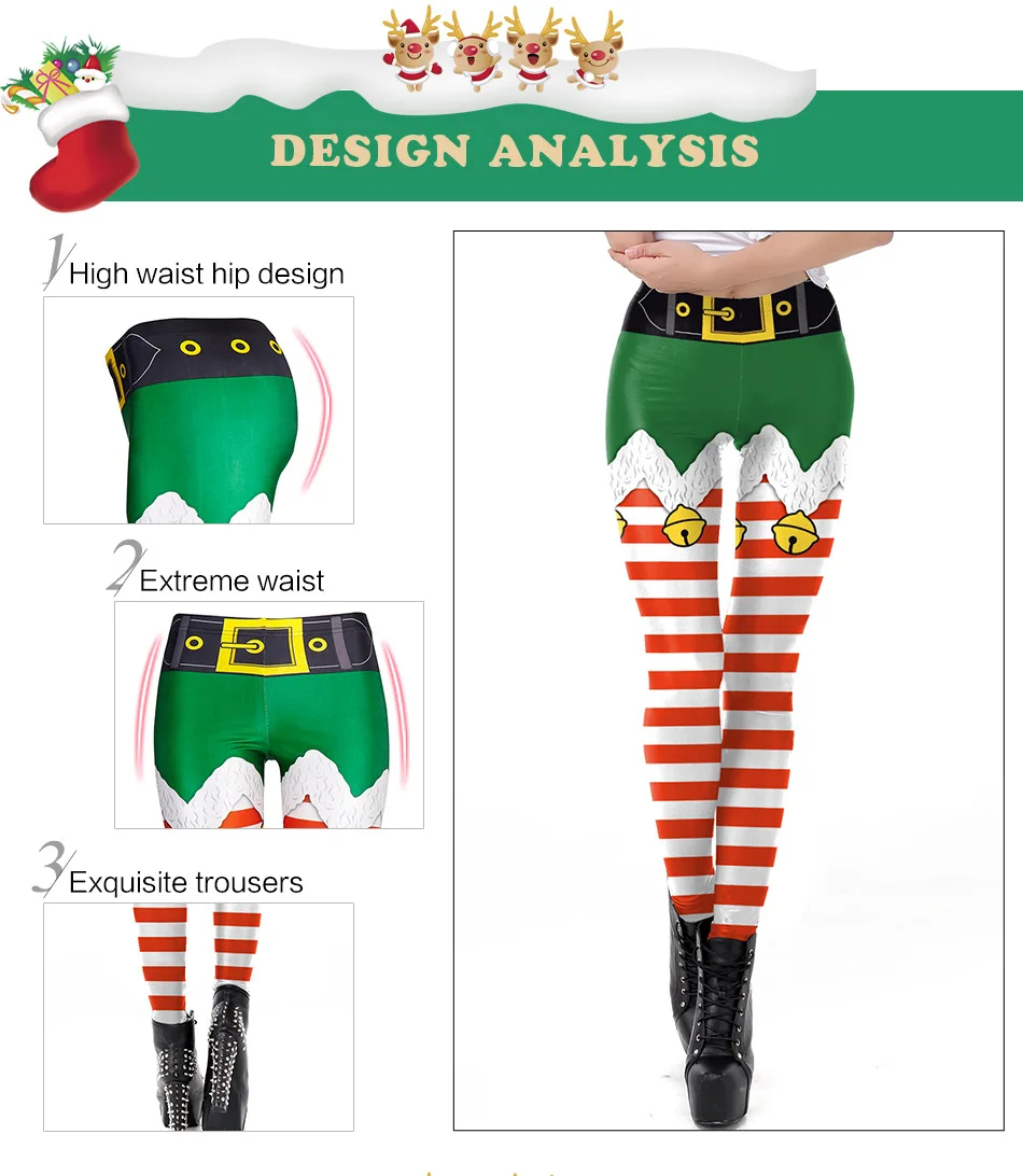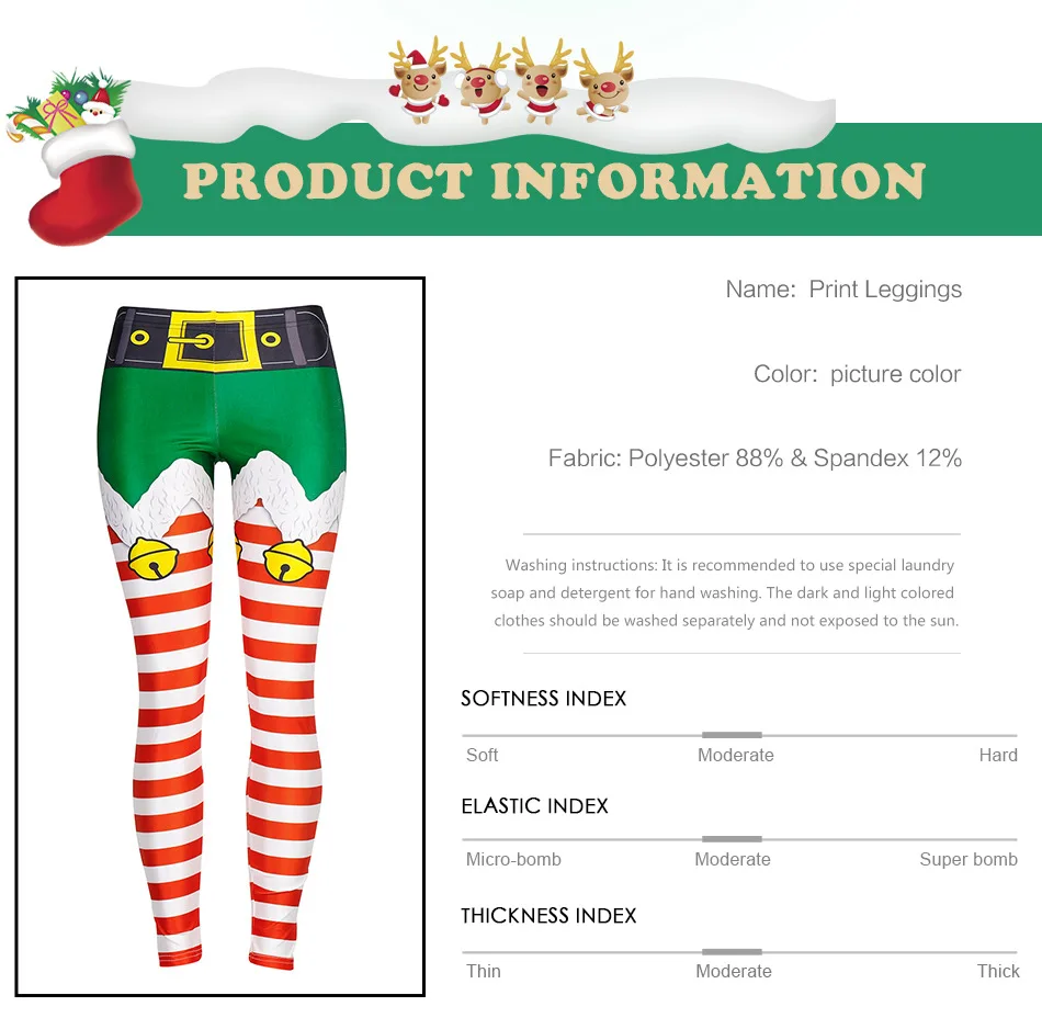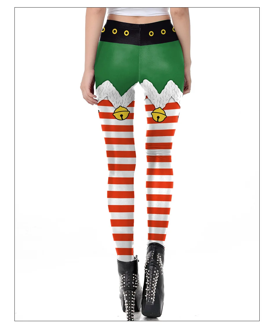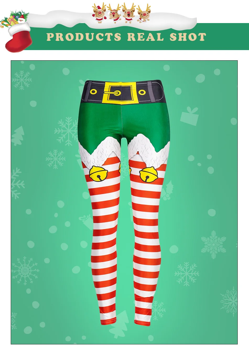 Новое поступление, зимний женский Рождественский костюм Санта Клауса, костюм для косплея, полосатые леггинсы с принтом, теплые леггинсы для фитнеса