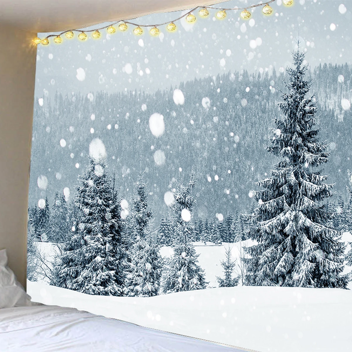 Настенный гобелен, Рождественская елка олень камин Зимний лес гобелен для спальни, гостиной, общежития