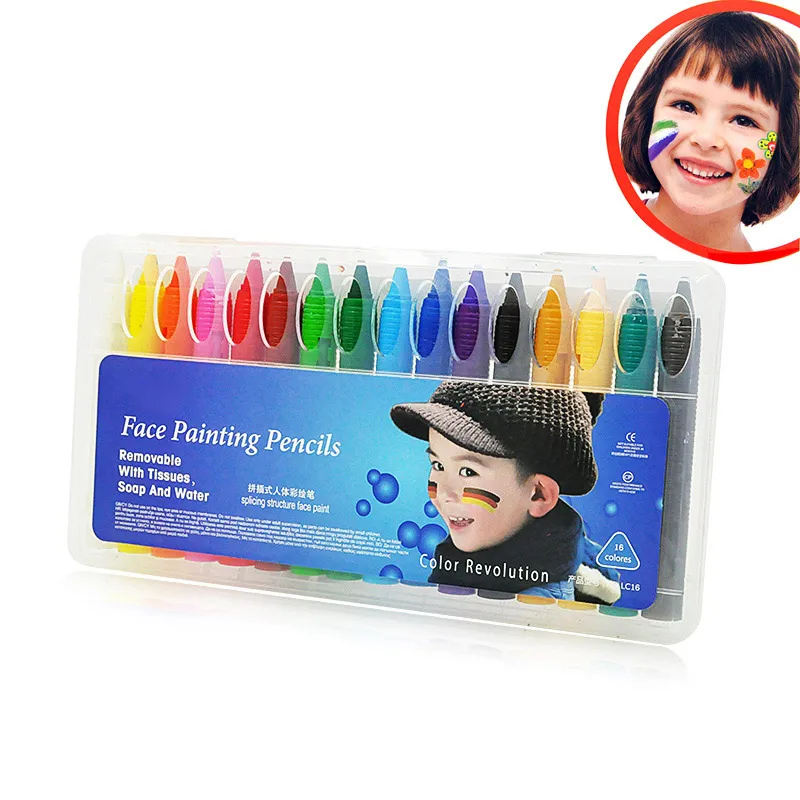 16 цветов краски для лица, карандаши для краски тела, нетоксичные, легко моющиеся