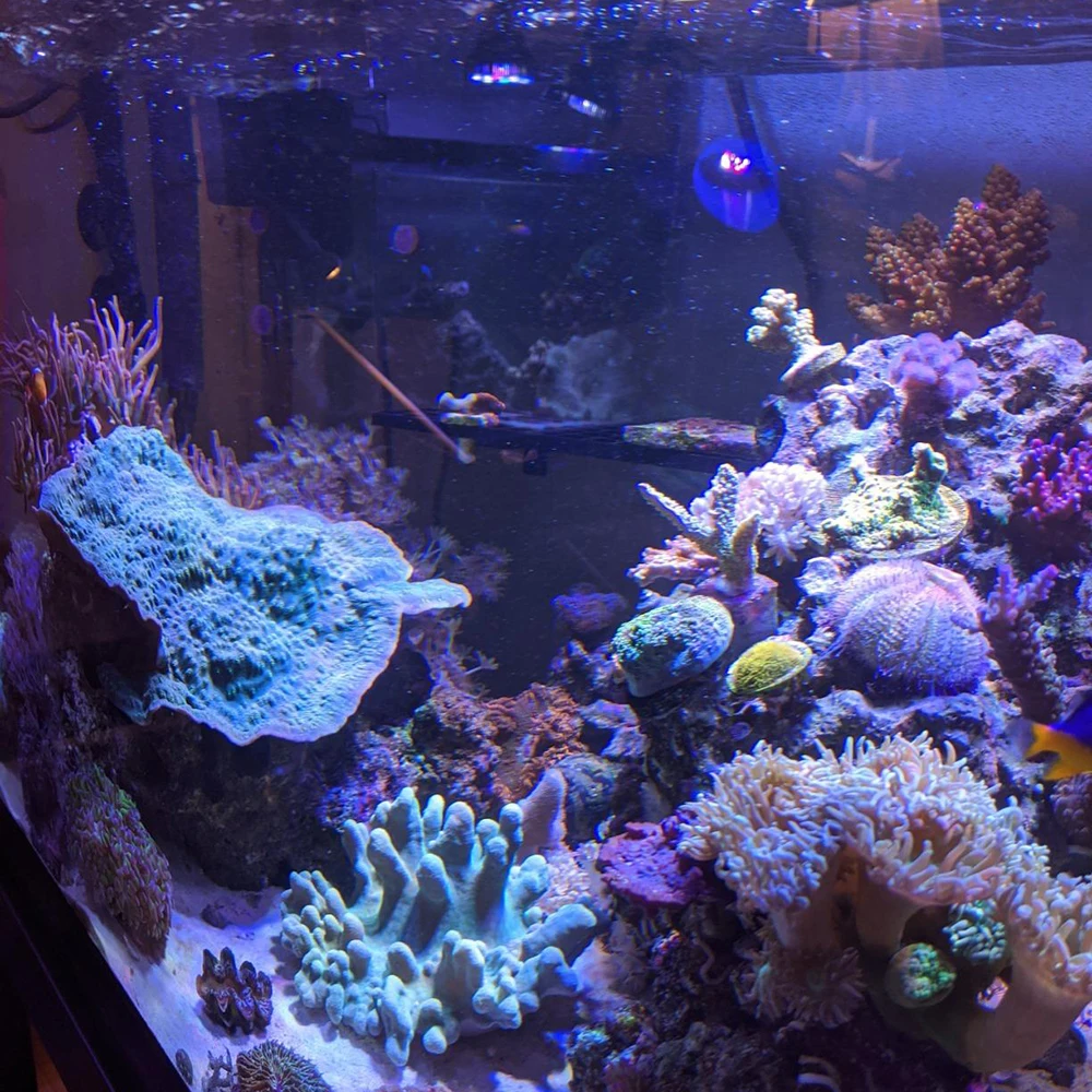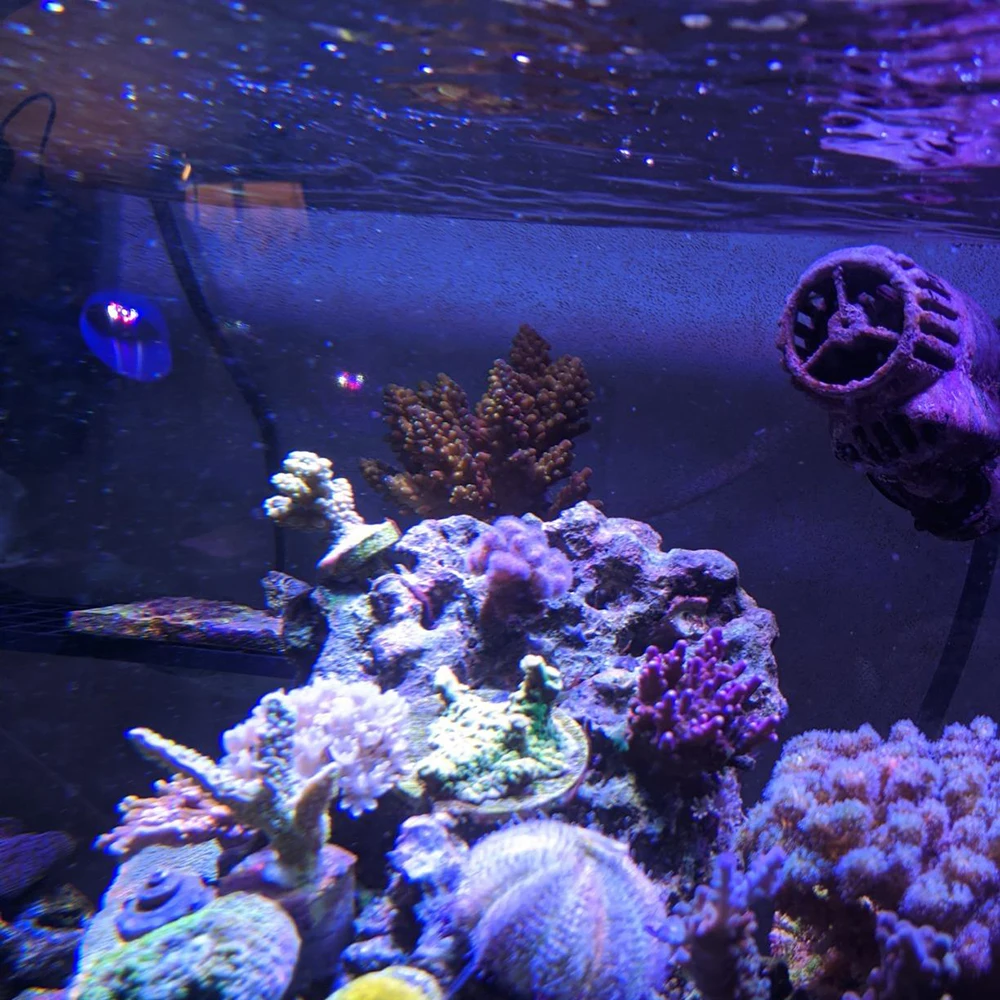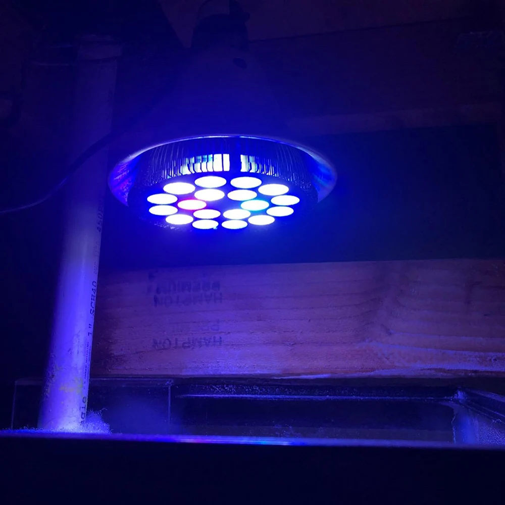 【 Полный спектр 】профессиональный полный спектр, изготовлен из высококачественных светодиодов PAR38, 18 Вт и 54 Вт с холодным белым светом 14000к 4 шт./6500 к 2 шт., синий 460нм 8 шт., УФ 420нм 2 шт., красный 630нм 1 шт., зеленый 520нм 1 шт. Обеспечьте более полезный спектр для ваших рыб, кораллов и рифов.