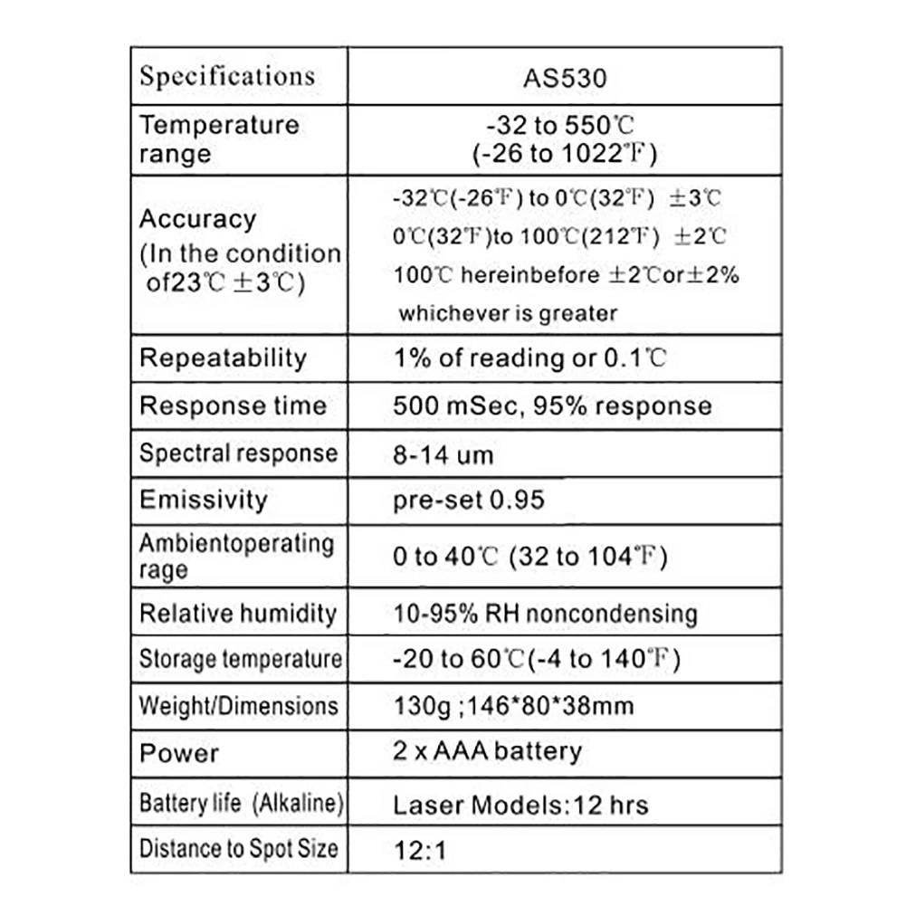 -Это портативный инфракрасный термометр с диапазоном измерения-32 ~ 550 °C/-26 °F ~ 1022 °F.