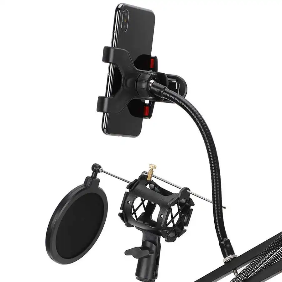 1 х поддержка основного корпуса 1 x мобильный телефон с зажимом 1 x мобильный телефон держатель Шланг 1 х Микрофон Звук Burst фильтр ветрозащитный экран 1 х Микрофон Звук Burst фильтр ветрозащитный экран поддержка 1 x Противоударная подставка для микрофона 1 x крепежный зажим