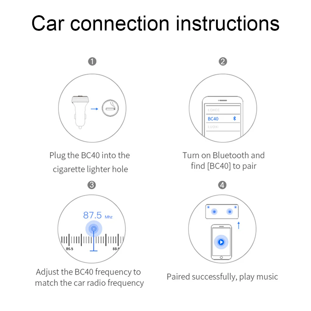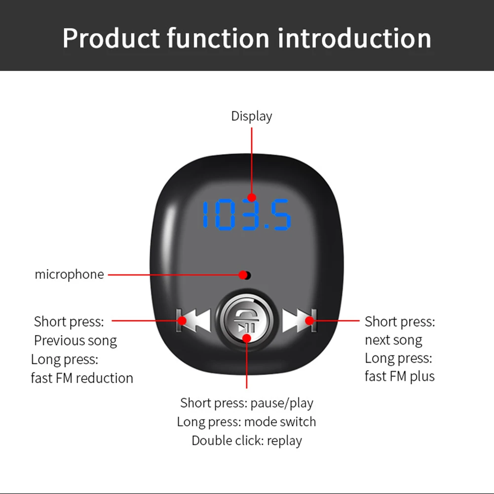Портативный автомобильный FM-передатчик с двумя USB-портами и Bluetooth 5,0