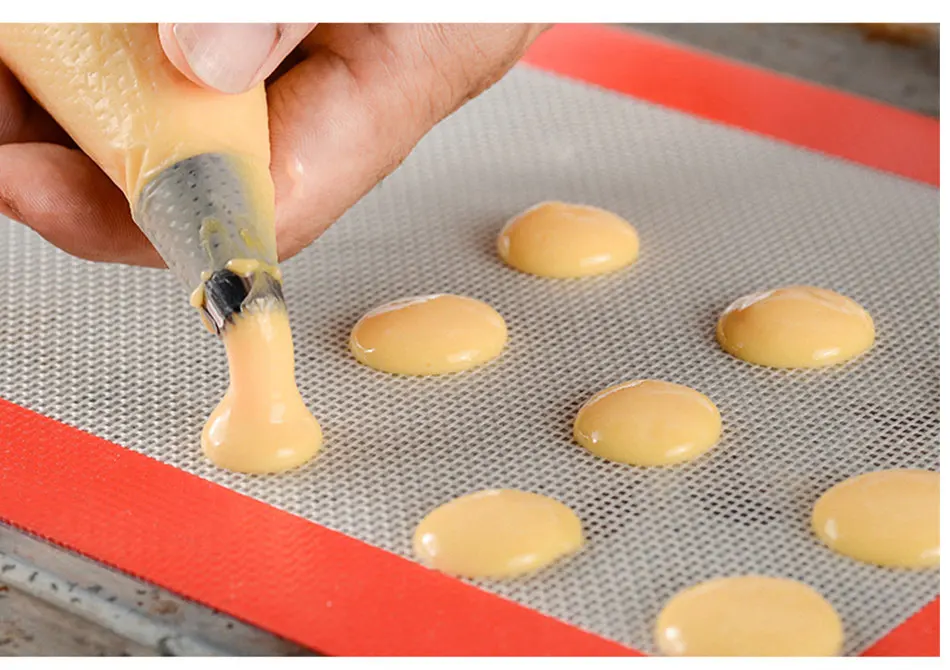 Антипригарная: Идеально подходит для всех ваших потребностей в выпечке. Превратите ваши противни в антипригарную поверхность с помощью этих силиконовых ковриков и наблюдайте за тем, как деликатесы выпекаются равномерно, идеально, а затем легко сползайте прямо с коврика. Нет липкости или сгоревших частей для вас, чтобы очистить! Также можно использовать для антипригарного замораживания, например, для деликатных десертов.