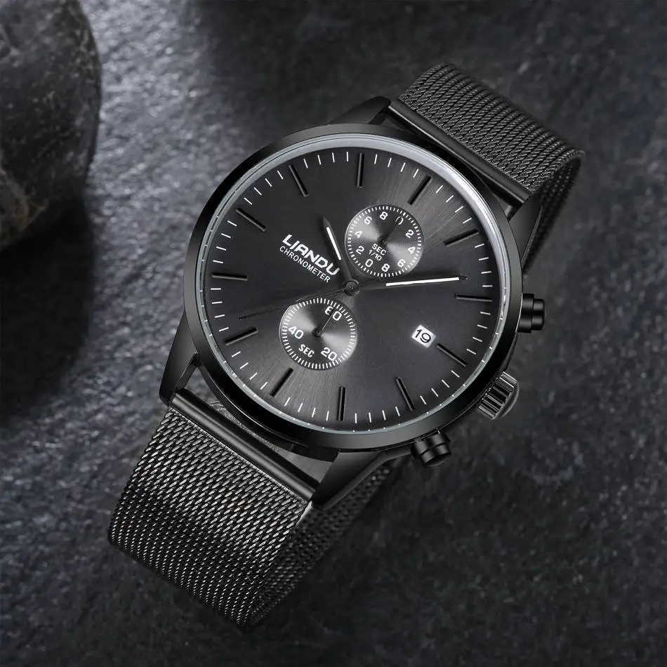 Диаметр циферблата: 43 мм Толщина циферблата: 12 мм Длина ремешка: 23 см Ширина ремешка: 20 мм Водонепроницаемость: 30 м Характеристики продукта: вакуумное покрытие, календарь, время, высококачественный сплав, стальной проволочный ремешок, кварцевый механизм