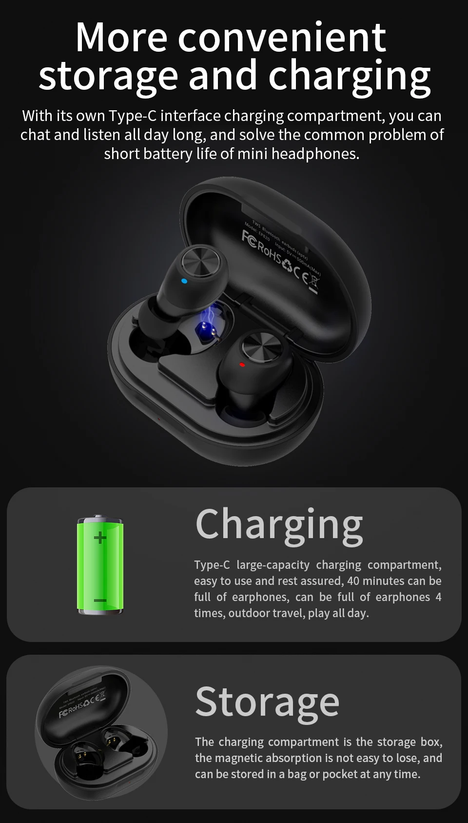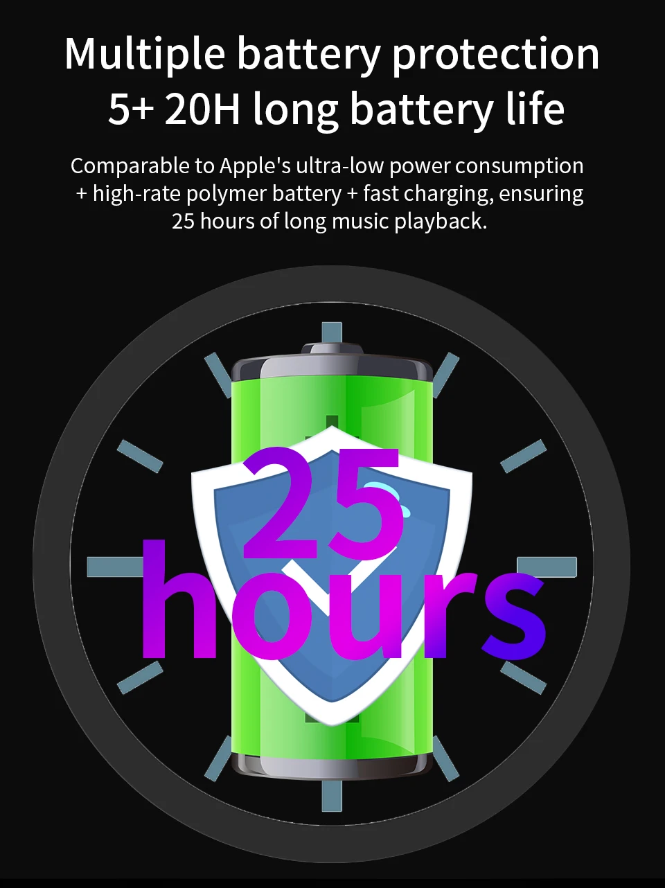 2> 25h время игрыБеспроводной наушники с поддержкой Тип Type-C для быстрой зарядки, до 9 часов проигрывания, и может быть увеличена до 25 ч с зарядным чехол.