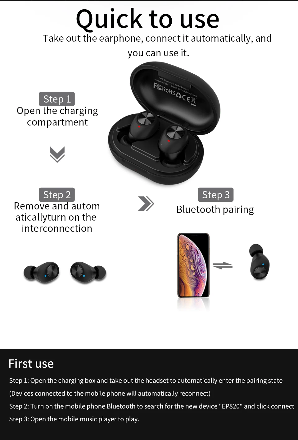 3> Bluetooth 5,0 & чип QualcommНебьющееся 33ft сильное соединение, чрезвычайно низкое энергопотребление, высокая точность звука с незаметной низкой задержкой.