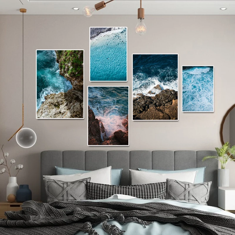 Картина на холсте, морской пейзаж, плакат, холст, настенные фотографии, синее побережье, морской пейзаж, картина на прикроватной тумбочке, плакаты, украшение комнаты, cuadros, печать на заказ, плакаты на стене