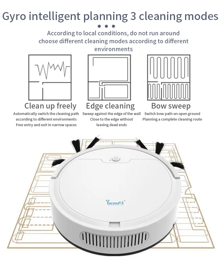 Функции: интеллектуальное время настройки, запуск одной кнопкой, подметание, уборка, пылесос, зарядка через USB, универсальное вождение, низкий уровень шума, интимное и нетревожное, низкое повторение, высокая степень покрытия, очистка яньбянь, чистка бантов, с гироскопом, без бега
