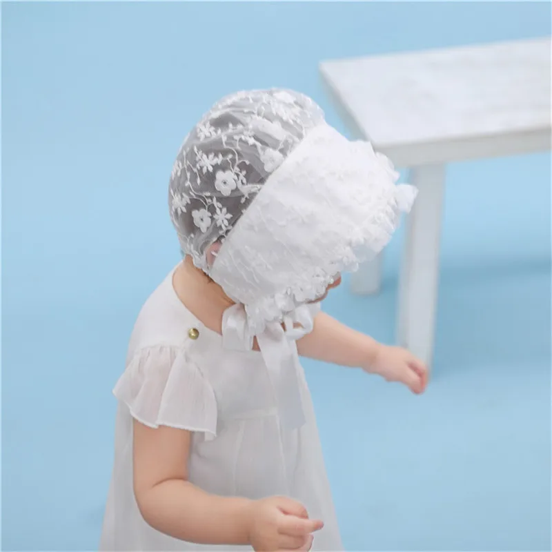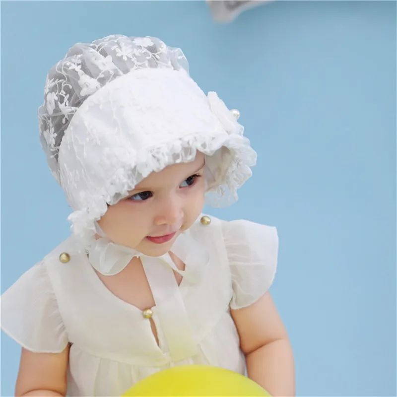 Белый кружевной капор для фотосъемки новорожденных детей ясельного возраста, летние солнцезащитные шапки для маленьких девочек, мягкая шапочка с бантом для малышей, милая Панама