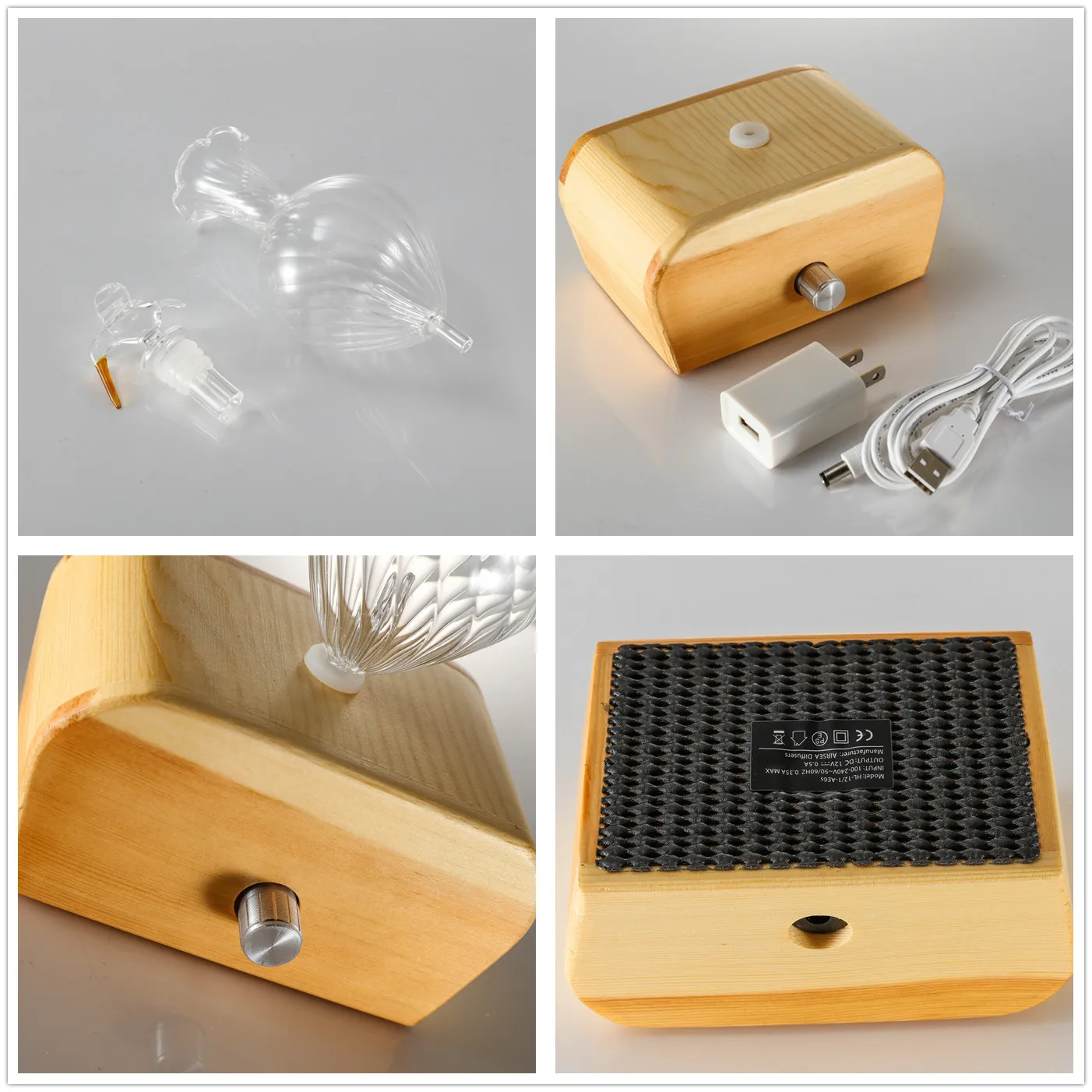 Безводное эфирное масло диффузор из цельного дерева Стекло холодная ароматерапия машина диффузор деревянный Арома распылитель для дома диффузоры
