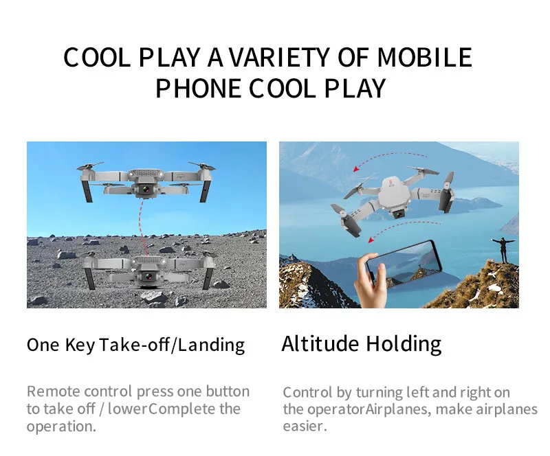 Вверх/вниз, вперед/назад, влево/вправо, f светильник светодиодный светильник, Безголовый режим, одна кнопка автоматического возврата, режим удержания высоты, WiFi FPV