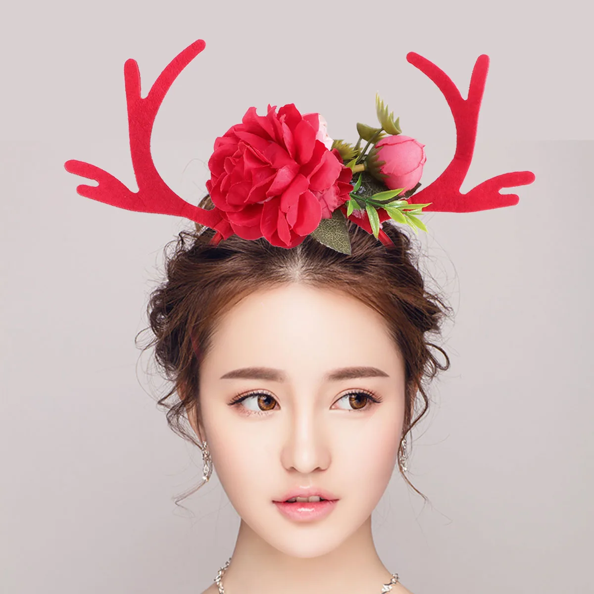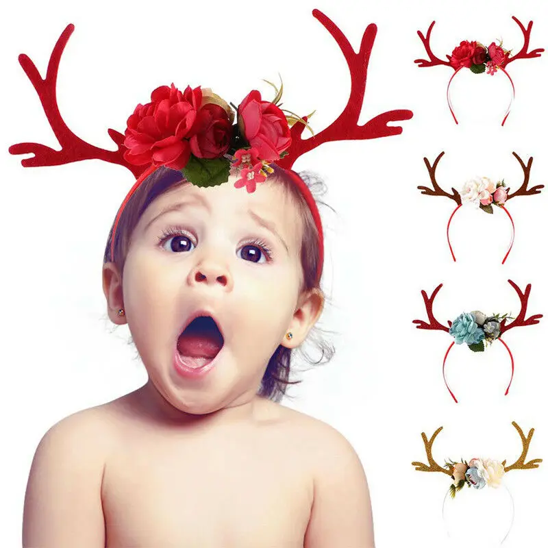 1 x детская забавная повязка на голову с оленями и рогами для девочек, с цветами, новинка, вечерние повязки на голову, рождественское нарядное платье, аксессуары для костюмов