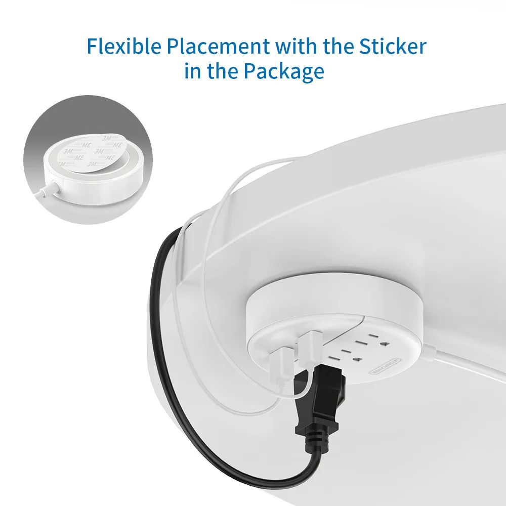 Настенное крепление удлинитель имеет отверстия на задней панели и клейкие наклейки для вариантов настенного крепления, поэтому вы можете установить его на стену, тумбочку или стол, больше никаких запутанных проводов к напольной розетке. И он идеально подходит по размеру На ладони без защиты от перенапряжений, которая не займет много места в сумке и не утяжелит. Компактный размер экономит место дома или в офисе, также идеально подходит для круизных кораблей, отелей, где мало недоступных Розетки.