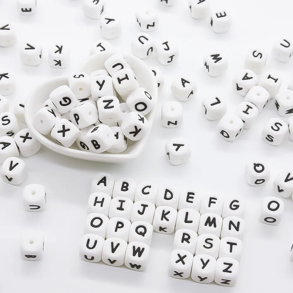 Cute-idea 12 мм 10 шт. силиконовые бусины с надписью Детские бусины для прорезывания зубов Жевательные бусы с алфавитом для индивидуального имени DIY ожерелье для прорезывания зубов