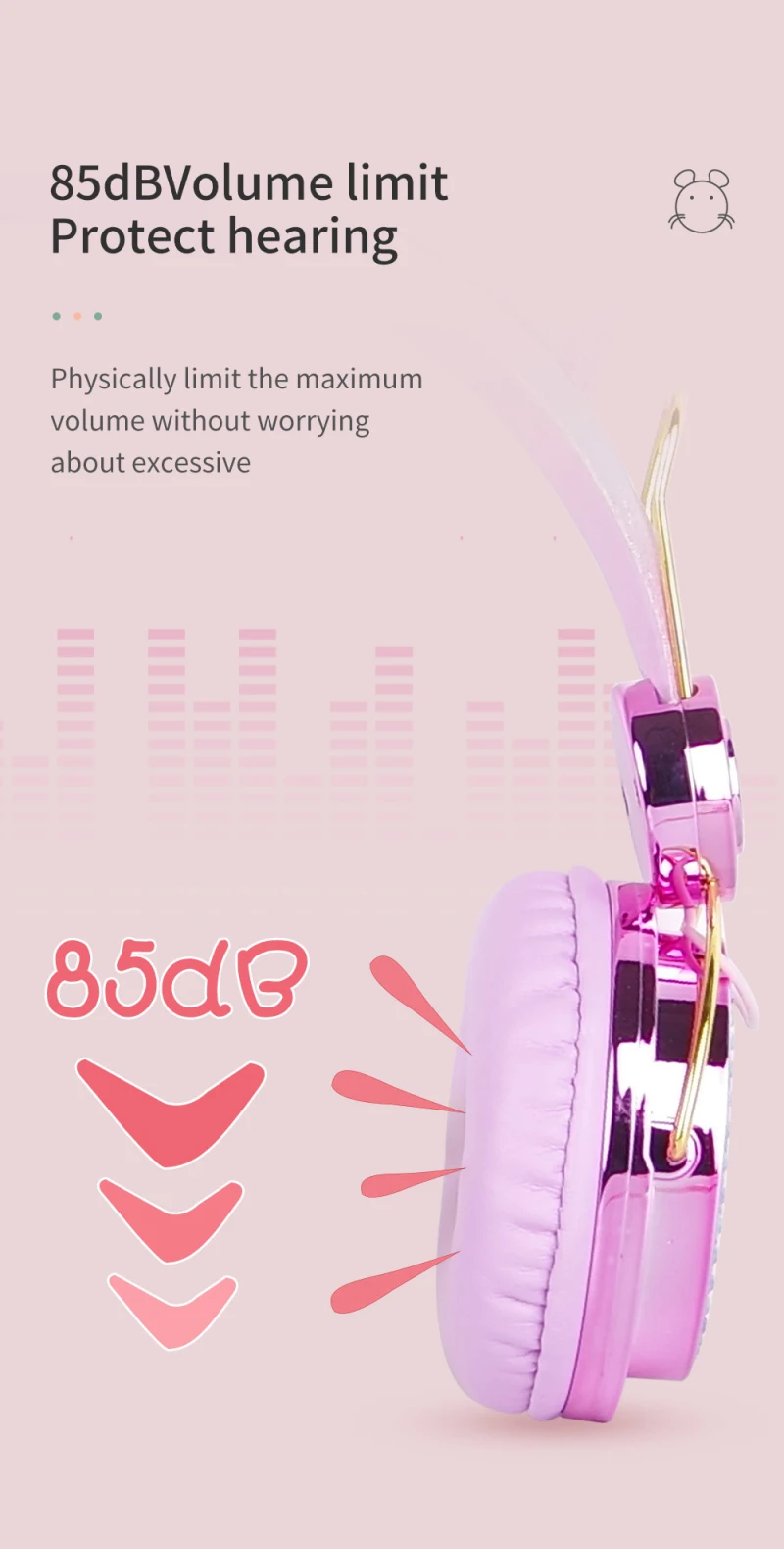 Примечание: могут быть некоторые небольшие точки давления вокруг внешнего уха, если подкладка наушника прижимает к уху в течение нескольких часов. Чтобы защитить уши и слухи ваших детей, мы предлагаем снять их после долгого прослушивания.