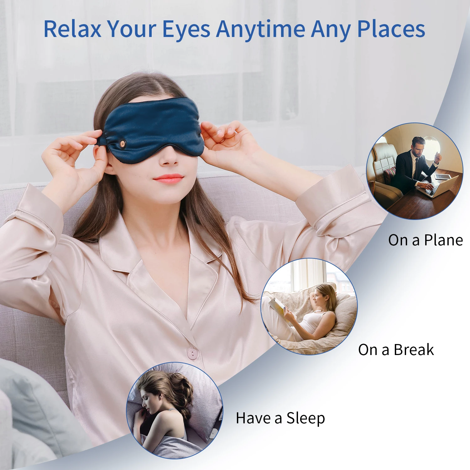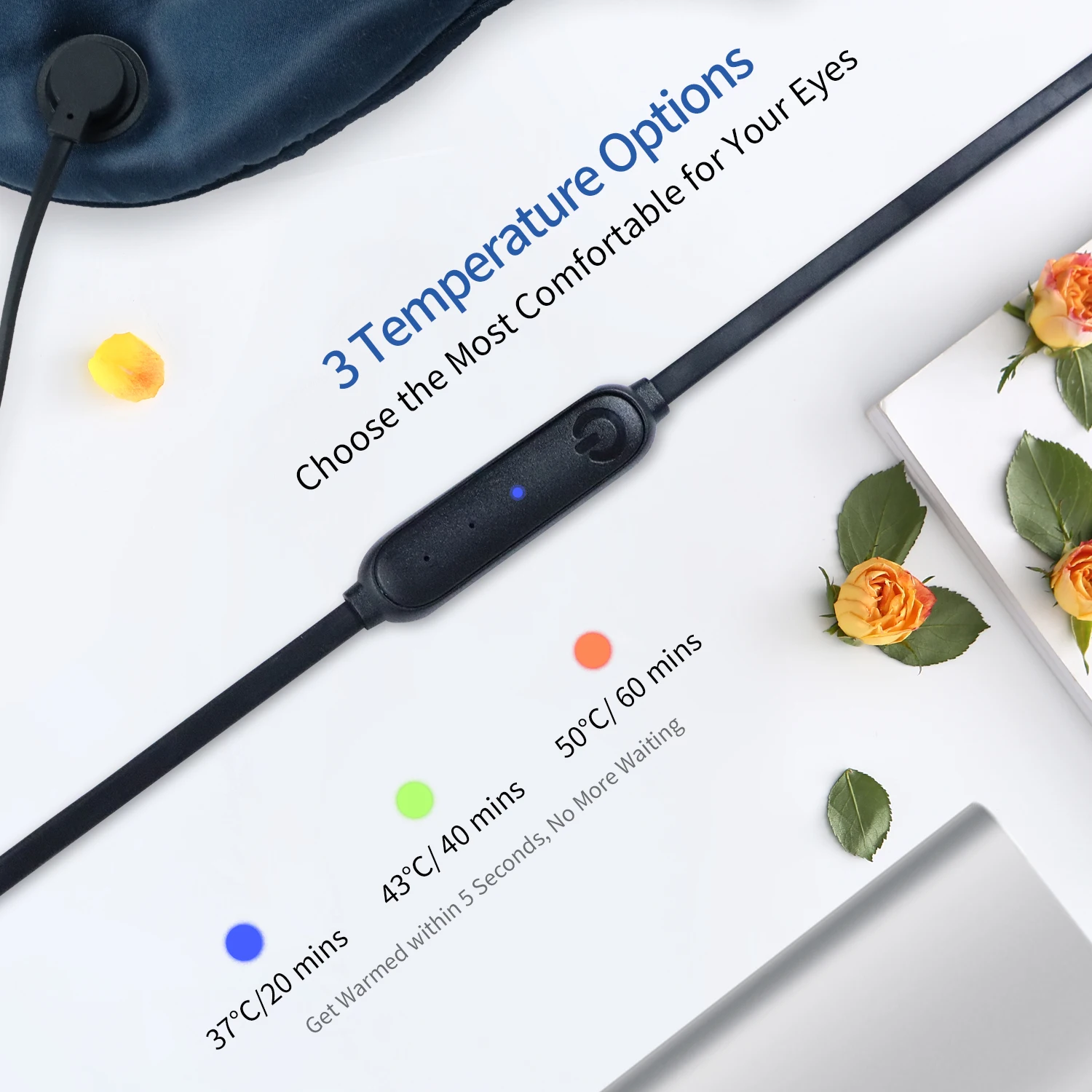 1. Безопасная для кожи шелковая маска для глаз: некачественная Тканевая маска для глаз может вызвать раздражение кожи, но эта маска для глаз изготовлена из приятного для кожи шелка тутового дерева. И шелк имеет характеристики воздухопроницаемости и поглощения влаги, что позволяет вам чувствовать себя более комфортно во время носки 2. Новейший Графеновый нагреватель: дешевая Подогреваемая маска для глаз обычно нагревается от ментальной проволоки, которая не безопасна и неравномерно нагревается. Графеновый нагреватель изготовлен из тонких частиц, поэтому он очень тонкий. Он может комплексно нагреваться быстро и безопасно 3. Сон и сухой помощник для глаз: горячая маска для глаз может ускорить кровообращение вокруг глаз и помочь снять усталость глаз. С повышением температуры глаза могут более эффективно поглощать искусственные слезы и облегчать сухость глаз 4. Обновление usb-магнитного зарядного кабеля: просто закройте один магнитный порт на другой, они будут сочетаться друг с другом, что полезно для людей, у которых есть проблемы с подключением USB зарядки por 5. Несколько вариантов времени и температуры: маска для глаз предлагает три варианта температуры и времени. Синий свет означает 37 ℃ и 20 минут времени. Зеленый свет 43 ℃ и 40 минут. Красный свет 50 ℃ и 60 минут