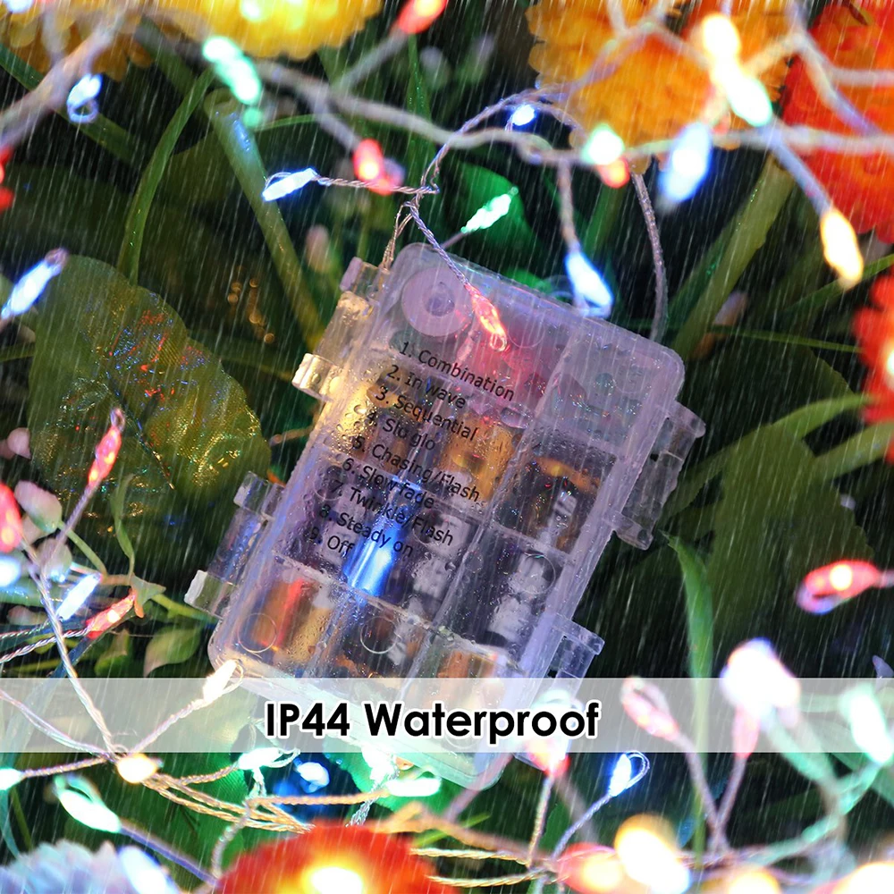 【 IP65 Водонепроницаемый 】провод части светодиодный гирлянды является IP65, что очень удобно использовать на открытом воздухе, даже вы можете разместить его под водой, USB не является водонепроницаемым, чехол для аккумулятора IP44, нет проблем с использованием чехла для аккумулятора в дождливые дни, но, пожалуйста, не помещайте его непосредственно под водой.