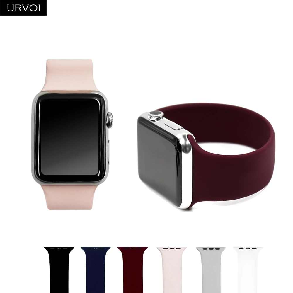 URVOI Solo loop для Apple Watch series 6 SE 5 4 3 2 1 жидкий силиконовый резиновый ремешок для iWatch растягивающаяся Замена запястья