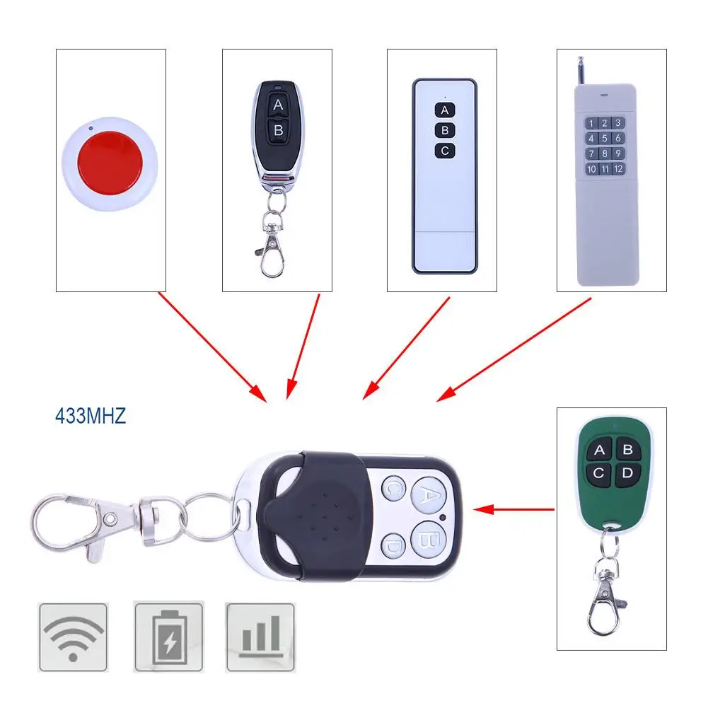 EV1527 все серии и совместимые модели, PT2240 все серии и совместимые модели, PT2262 все серии и совместимые модели, PT2260 все серии и совместимые модели, HT6P12E, HT6P20D и т. д., CAME1, CAME2 и т. д., k323A материнская плата (исключительно поддержка), T18 и других 32-битных коды;(Не поддерживает коды прокатки.)