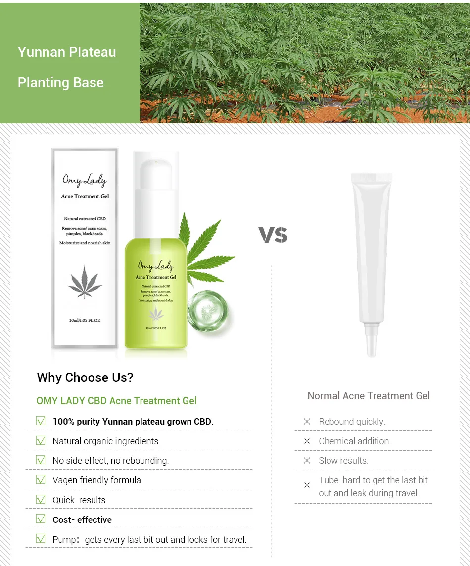 База для посадки на плато Юньнань; Преимущество происхождения; Богатое содержание КБР; 100% чистота; Эффективно удаляет акне, рубцы от акне, прыщи, черные точки и т. д.