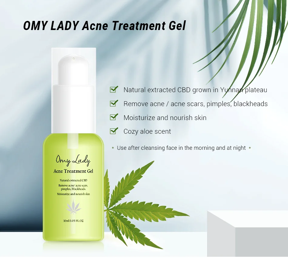 Увлажняющий и отбеливающий гель для лечения акне OMY LADY CBD для удаления рубцов от акне, Успокаивающая эссенция с алоэ, уход за кожей