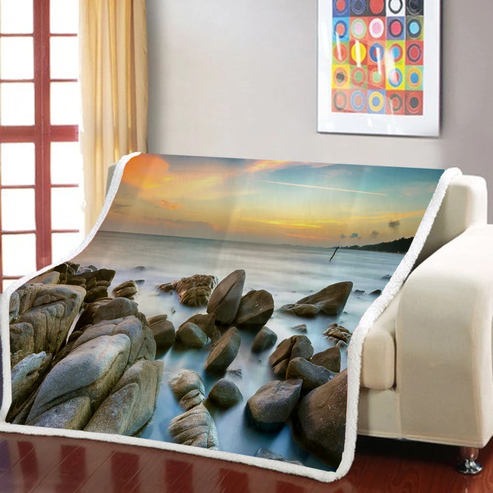 Заказное пляжное Флисовое одеяло с каменным шерпой на диване, кровати, диване, покрывало для кровати, зимнее теплое постельное белье, 3d принт, тонкое одеяло, домашнее покрывало