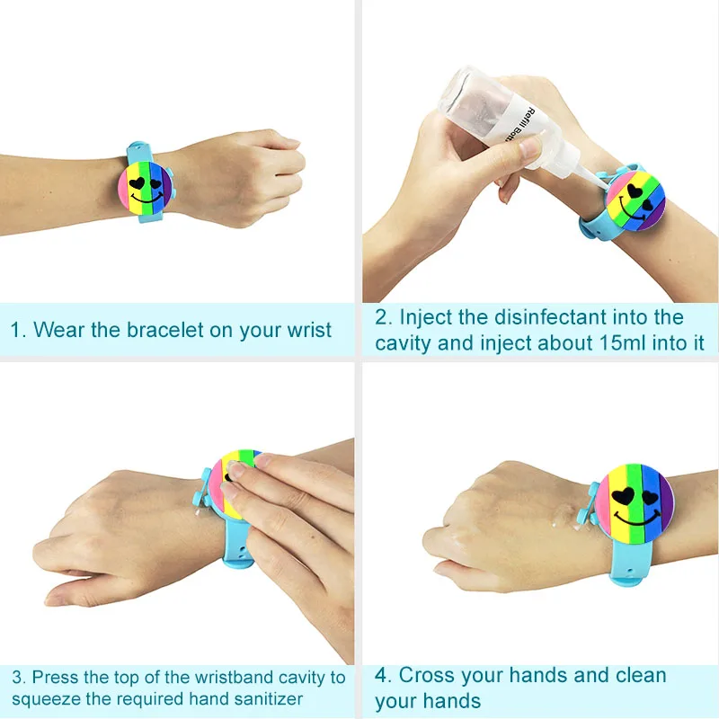 1: гибкий, прочный, водонепроницаемый и гладкий на ощупь, солнцезащитный, без обесцвечивания, без деформации, 2: инструкции по очистке: стирать с мылом, теплой водой и заправлять 3: унисекс для взрослых/детей-универсальный размер (длина ремешка регулируется) 4: возраст 7 лет и старше-использование под наблюдением взрослых 5: вмещает до 10 мл жидкости 6: отверстие для пополнения 8 мм достаточно широкое для размещения большинства продуктов 7: моется, переносится и для свободных жидкостей и жидких гелей. 8: вмещает до 10 мл жидкостей и легко заправляется. 9: Налейте жидкость на ваш выбор и нажмите на логотип браслета, чтобы избежать вашего досуга. 10: Этот браслет идеально подходит для тех, кто путешествует, работает в сфере здравоохранения, в сфере услуг и практически для кого-либо другого. 11: идеальный подарок для себя и близких.