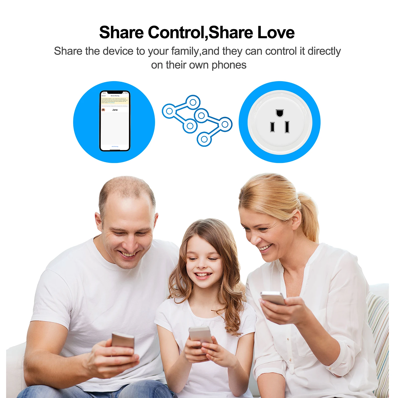 Одним нажатием, чтобы поделиться смарт-вилкой с семьей, чтобы управлять вместе с помощью бесплатного приложения smart LIFE.
