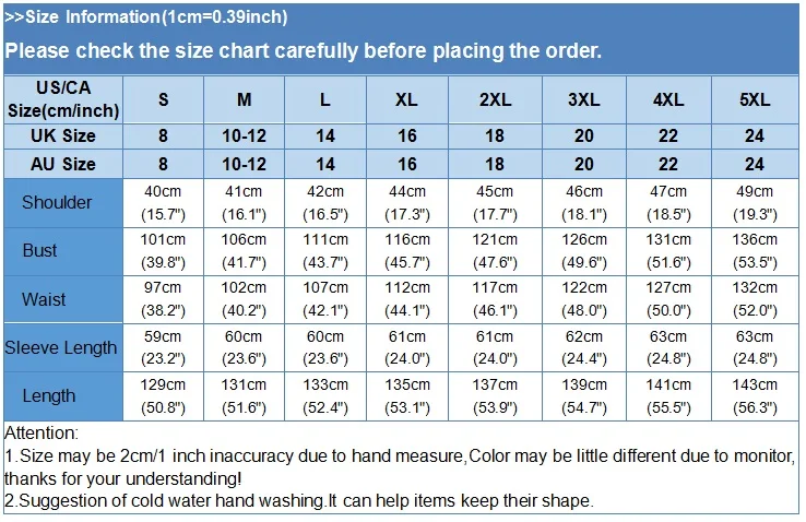 4. Attention!!! Please check the size chart carefully before ordering.