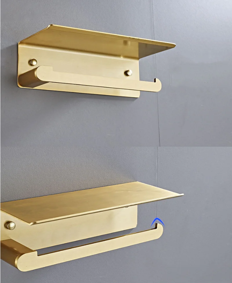 Настенный матовый золотой держатель для туалетной бумаги для ванной комнаты, держатель для рулона бумаги, мобильный телефон, держатель с полкой, вешалка для полотенец для ванной комнаты