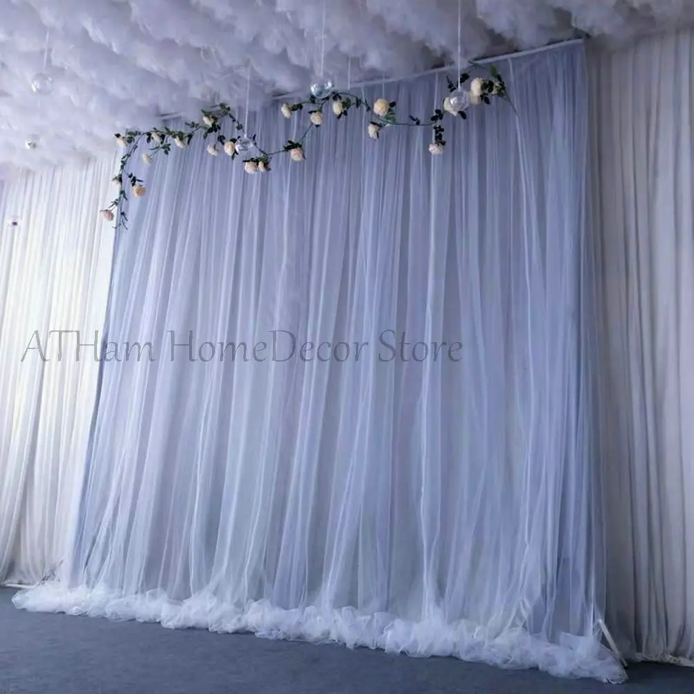Applicable scene:Tulle Wedding Backdrop For Reception, Wedding Ceremony Backdrop Curtains, Wedding Baby Shower Backdrop Photo Booth Backdrop, Party Decor. Care:The Tulle Backdrop Curtain is easy to care,you can only clean the tulle Backdrop Curtain by simply washing it with cold water at a low temperature and then hang it up,it can dry quickly.When tulle backdrop got wrinkle in express package, you can simply spray a little water and pat with your hands, then you will get that fluffy and neat effect.