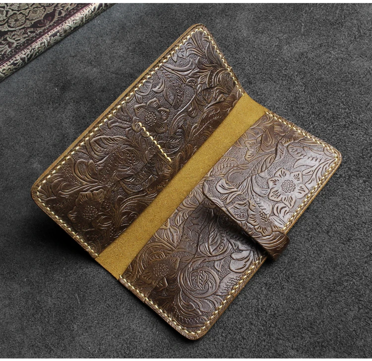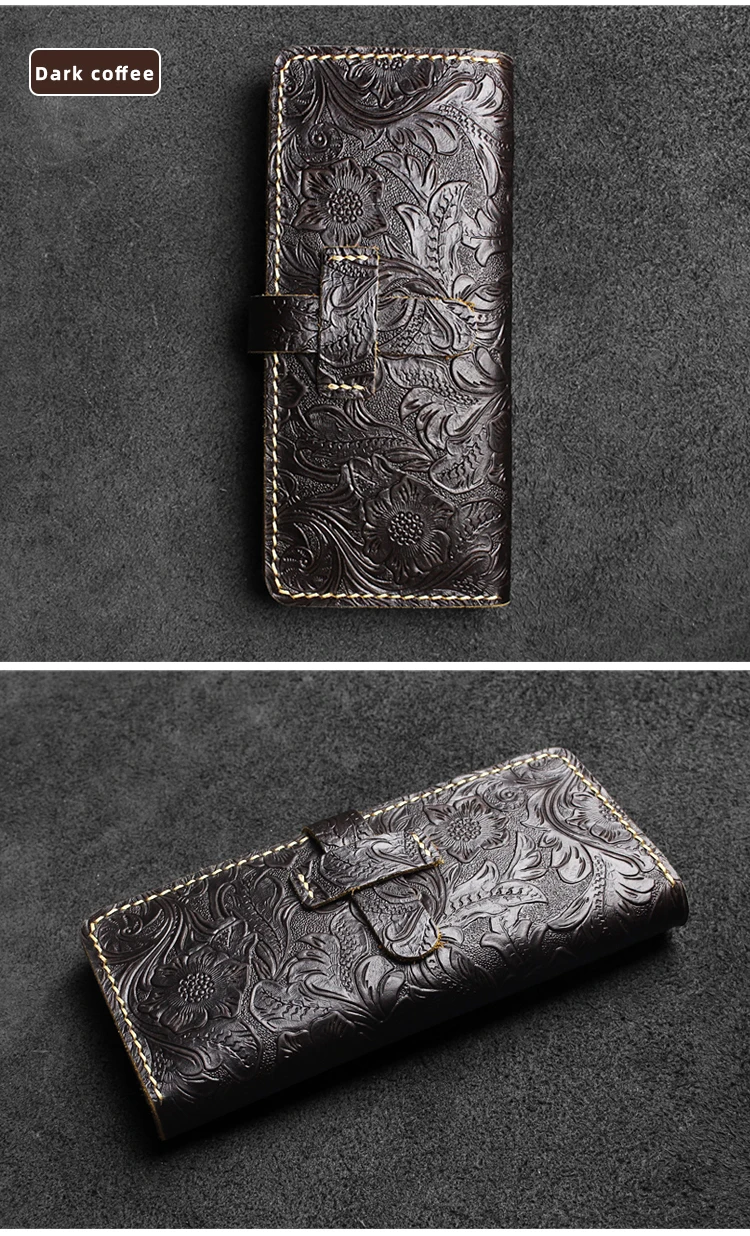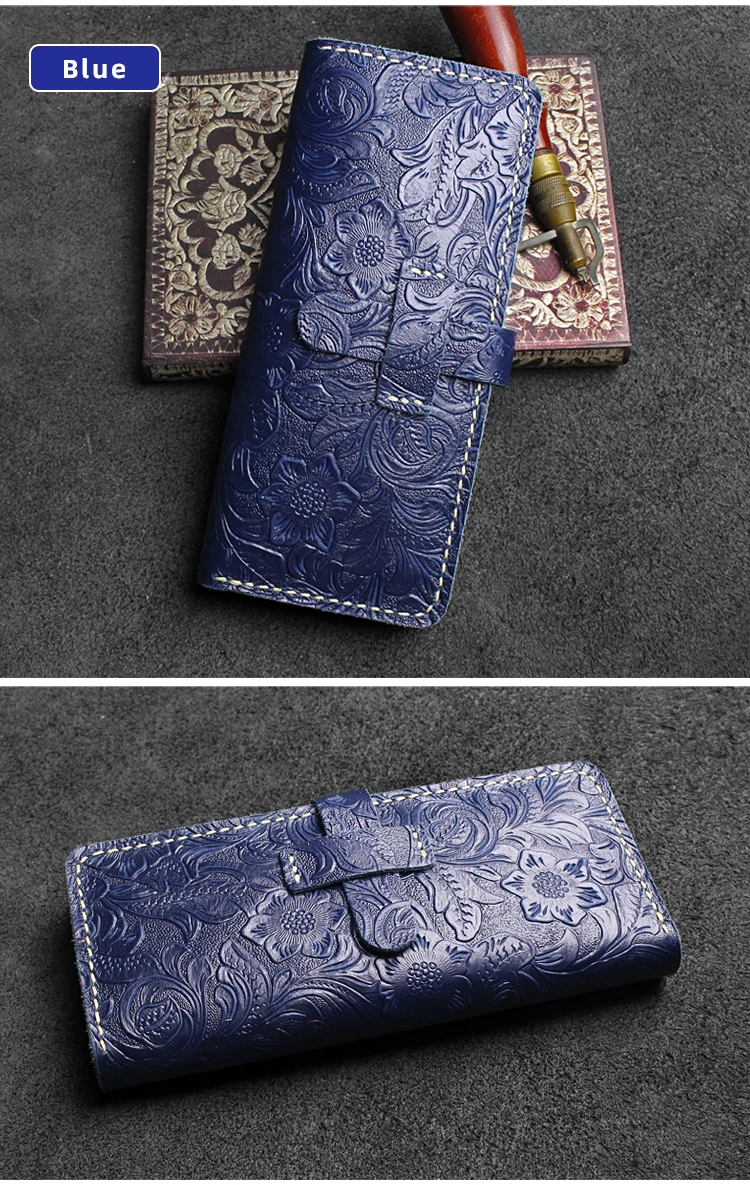 Ретро Классический Длинный кошелек из натуральной кожи, Мужской Длинный кошелек, кредитница, кошелек, мужской клатч, оригинальный цветочный дизайн, кошелек для женщин