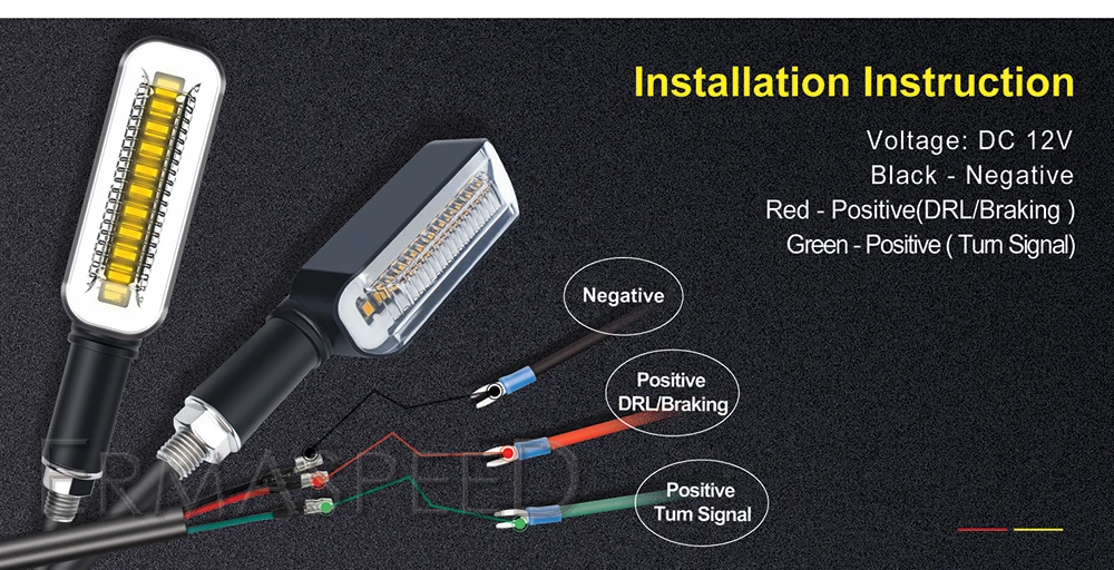 • Черный-отрицательный, зеленый-положительный (сигнал поворота), красный-положительный (DRL/торможение)