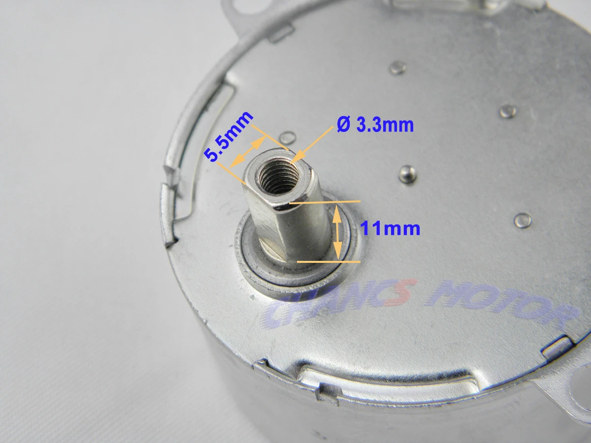 Product Name : Synchronous Motor; Model : TYD-50; Shaft Diameter: 5.5mm ; Shaft Length: 11mm; Direction : CCW(Fixed); Voltage : AC 12V; Speed : 10-12RPM/min; Power : 4W; Torque:≤2.4kg*cm; Frequency : 50/ 60Hz; Package Content : 2 x Synchronous Motor;