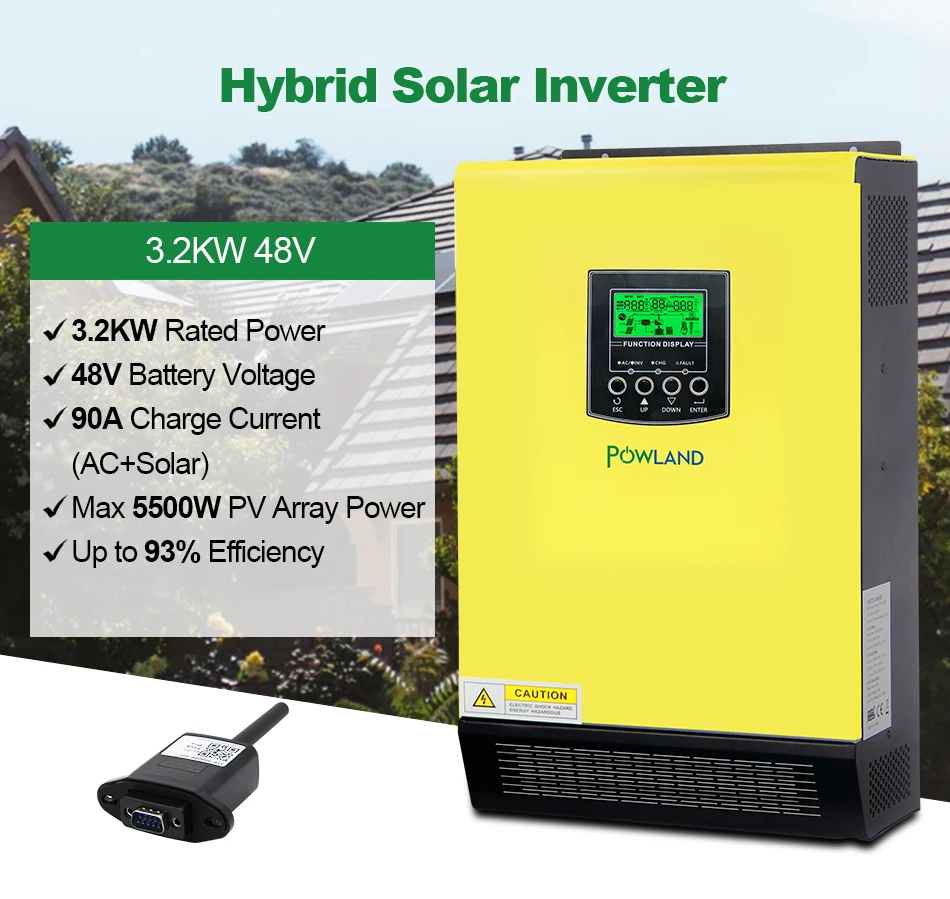 WIFI Гибридный солнечный инвертор 3200w 48v 230vac PV вход 5500W 450Vdc 90A mppt Солнечное зарядное устройство 60A зарядное устройство сетевой инвертор