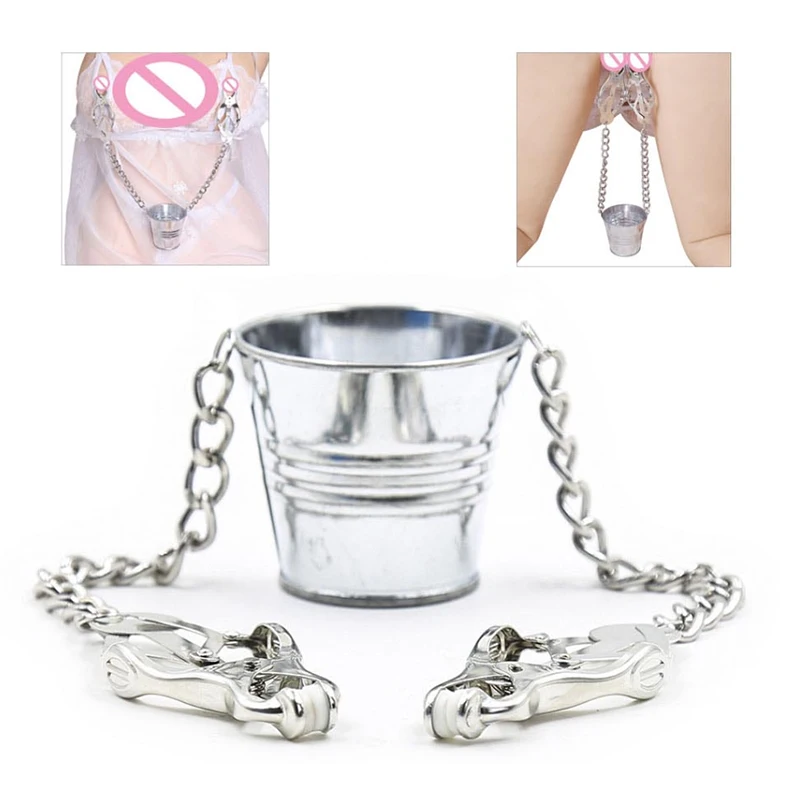 БДСМ металлические зажимы для сосков и для малых половых губ грудь клип раб на цепи пытка Регулируемый Вес ведро экзотические взрослые игры Пара интимные игрушки для женщин