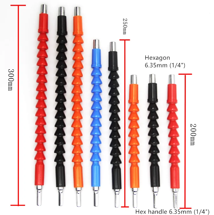 Информация о продукте Название товара: Многофункциональный Универсальный гибкий вал Материал товара: ПВХ пластик Цвет товара: черный, оранжевый, красный, синий Технические характеристики изделия: 200MM.250MM.300M Советы: 1. Он может использоваться только для перезаряжаемых дрелей и ветровых партий, не подходит для использования на электрических дрели и ударных дрелей 2. Крутящий момент перезаряжаемого сверла нельзя регулировать слишком высоко во время использования, так что, когда винт прикручивается до конца, перезаряжаемое сверло автоматически соскальзывает и мягкий вал не будет сломан.