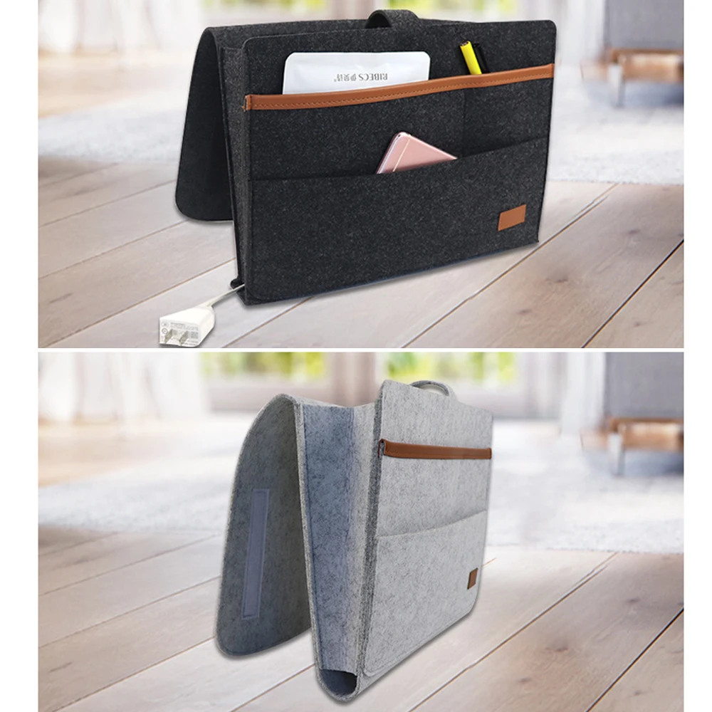 Прикроватный ящик для хранения имеет 1 большой карман и 2 маленьких кармана, и