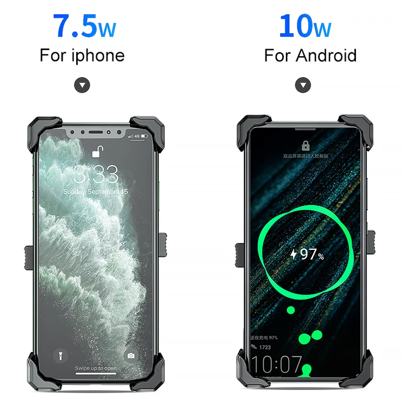 Версия: 1. QI-Беспроводная зарядка + USB зарядка, бесплатное переключение 2. Быстрая зарядка QC 3,0 3. Нормальная версия не имеет функции зарядки Название: мотоциклетная Беспроводная зарядка для мобильного телефона Материал: PA66 + GF Вход напряжение: 12V-24V Выход: QI Беспроводная зарядка 15 Вт, QC3.0 Применимый Размер: 3,5-6,5 дюйм (ов) Подходящий диаметр трубы: 22-32 мм