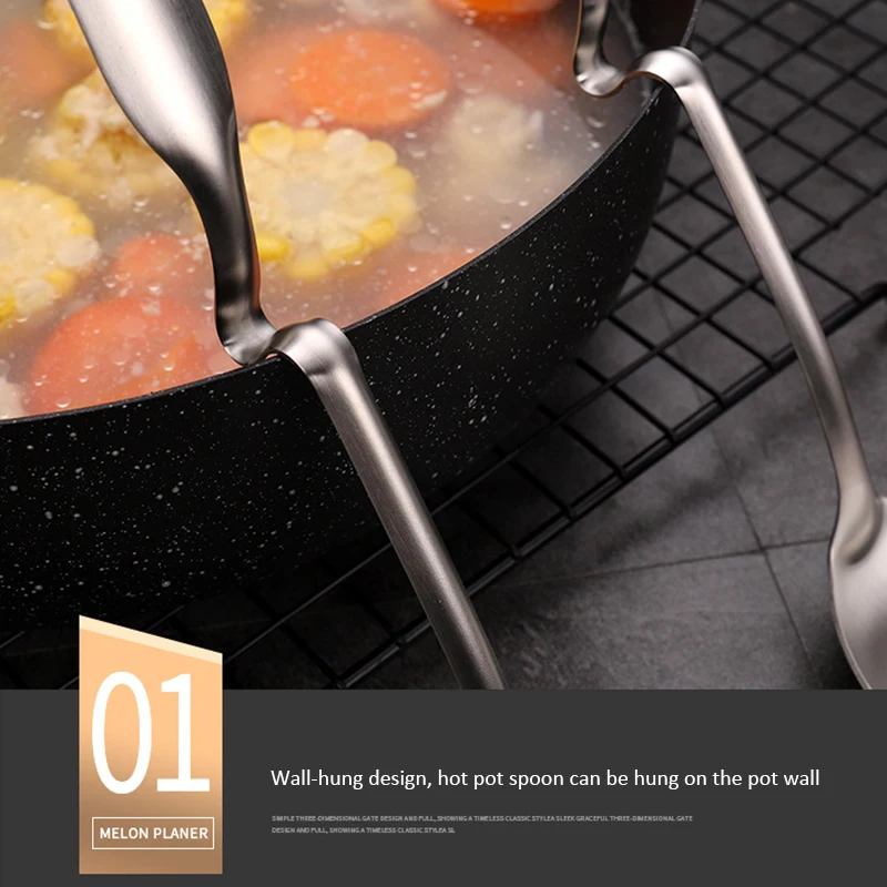 Креативный Настенный Дизайн: Уникальная изогнутая ручка крючка предотвращает скольжение ложки в суп. Когда он не используется, его можно повесить на край горшка, который не занимает места и является чистым и гигиеничным.