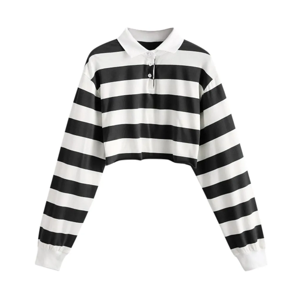 Женский пуловер с длинным рукавом и цветными полосками на пуговицах, толстовки, топы, блузки
