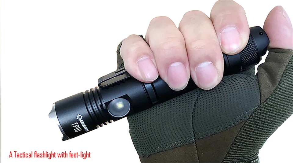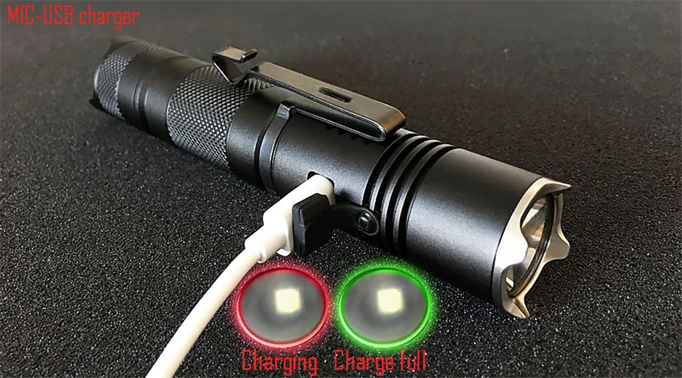 Angryfox TP10 светодиодный перезаряжаемый тактический фонарь 18650 для самозащиты, фонарь с микро-usb зарядкой SUS Bazel с боковым фонариком